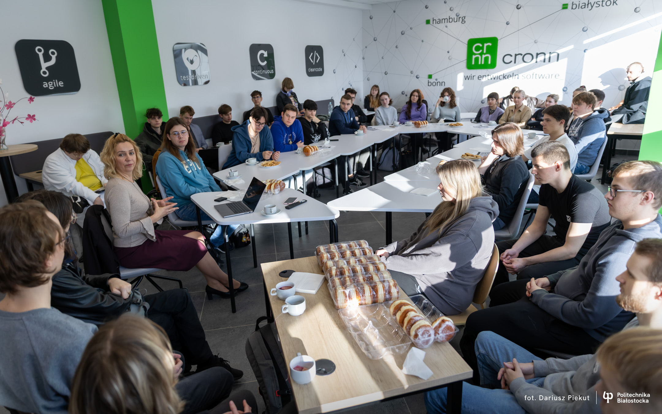 Na Wydziale Elektrycznym Politechniki Białostockiej żartowano, że kubki kawy są „bezprzewodowe”, ale energia rozmów była jak najbardziej konkretna.